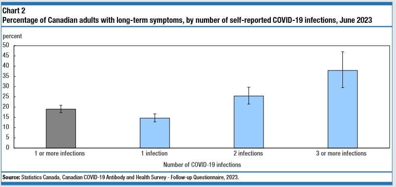 Your risk gets higher with every Covid infection. According to a Statistics Canada report, about 40 percent of people develop some kind of Long Covid by their third infection. The evidence so far indicates that your risk only escalates from there.