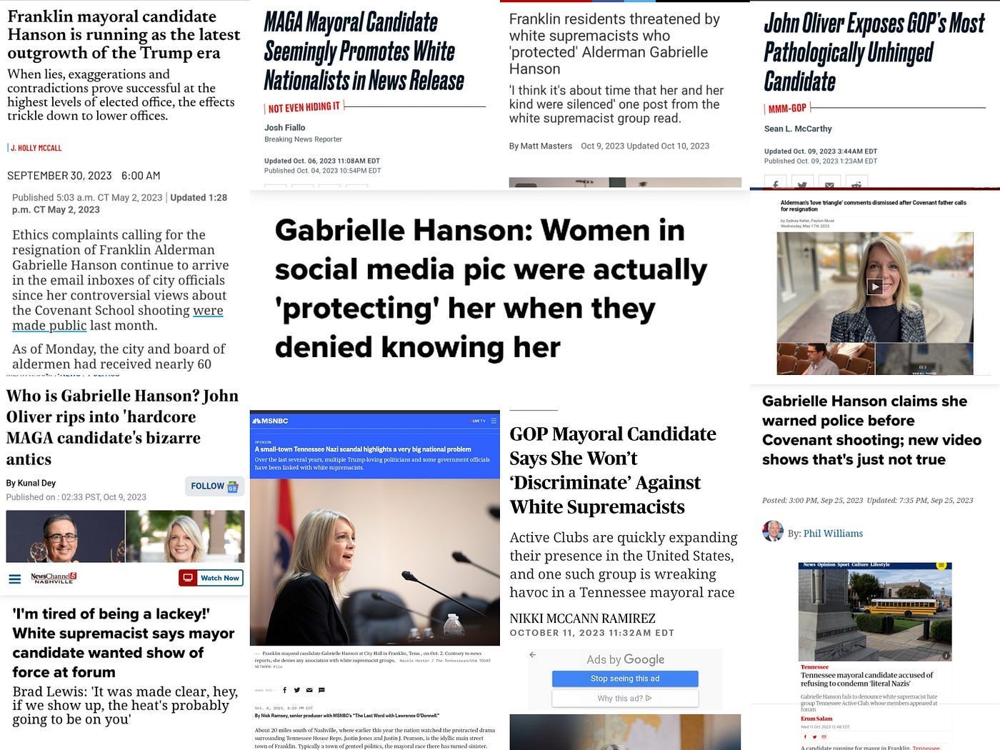 Hanson’s behavior is so bad, she’s all over the national news and infotainment outlets. Locally, Nashville investigative reporter Phil Williams has been all over her like a persistent pebble in Hanson’s shoe.